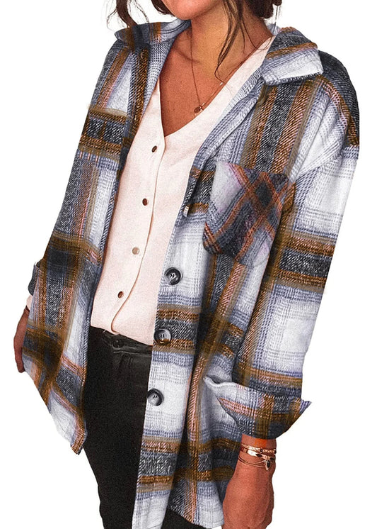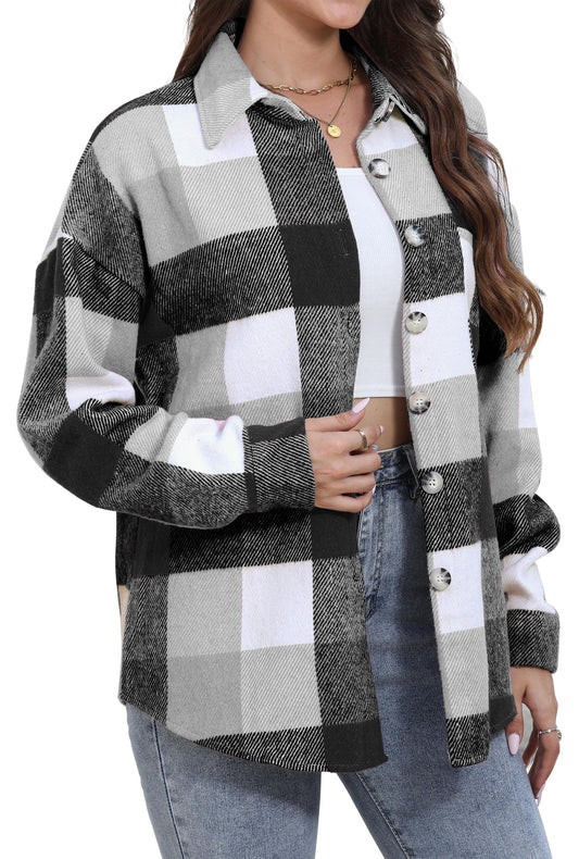 Womens Plaid Shirts Flannel Shacket Jacket Long Sleeve Button down Boyfriend Shirt Coats
